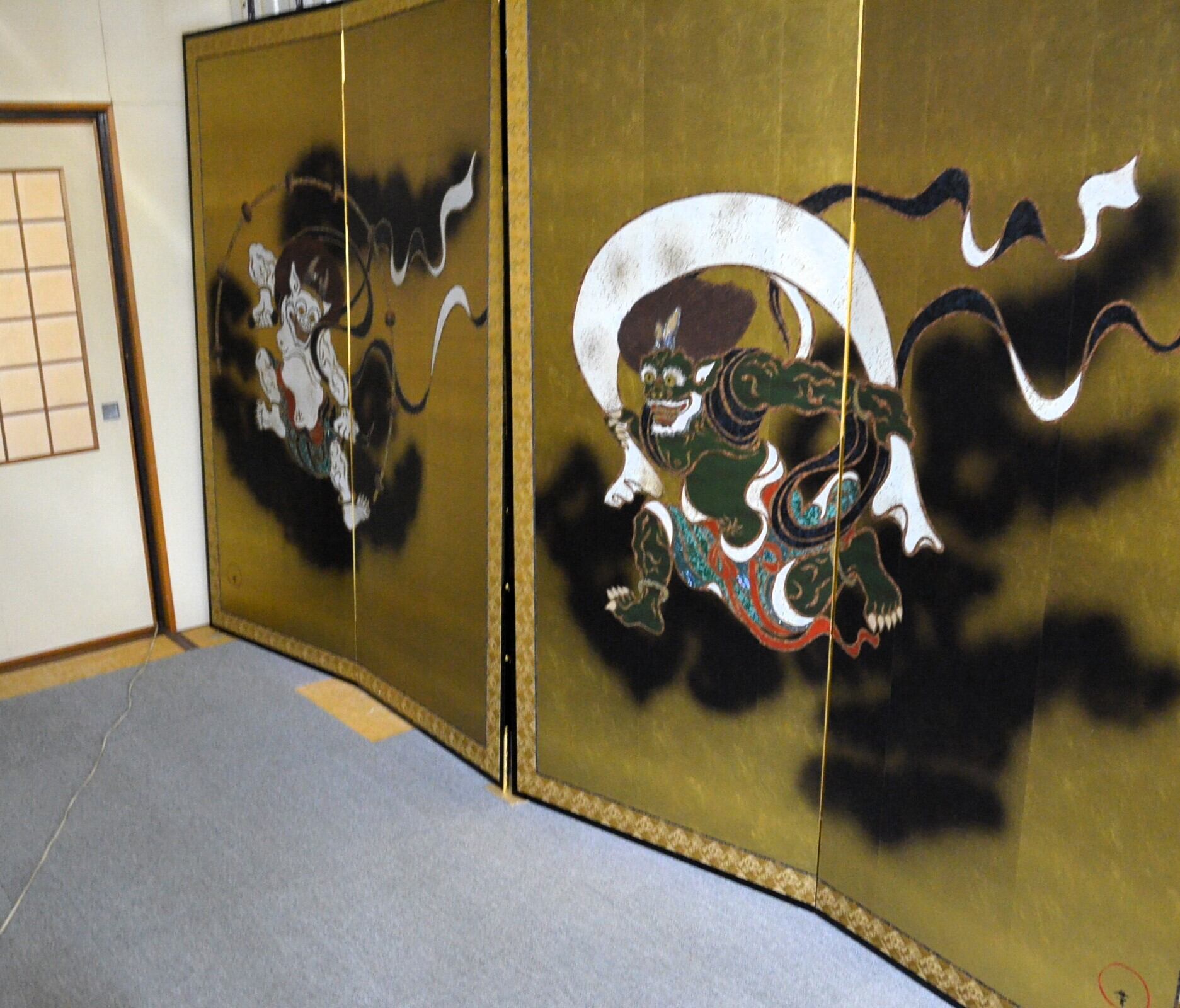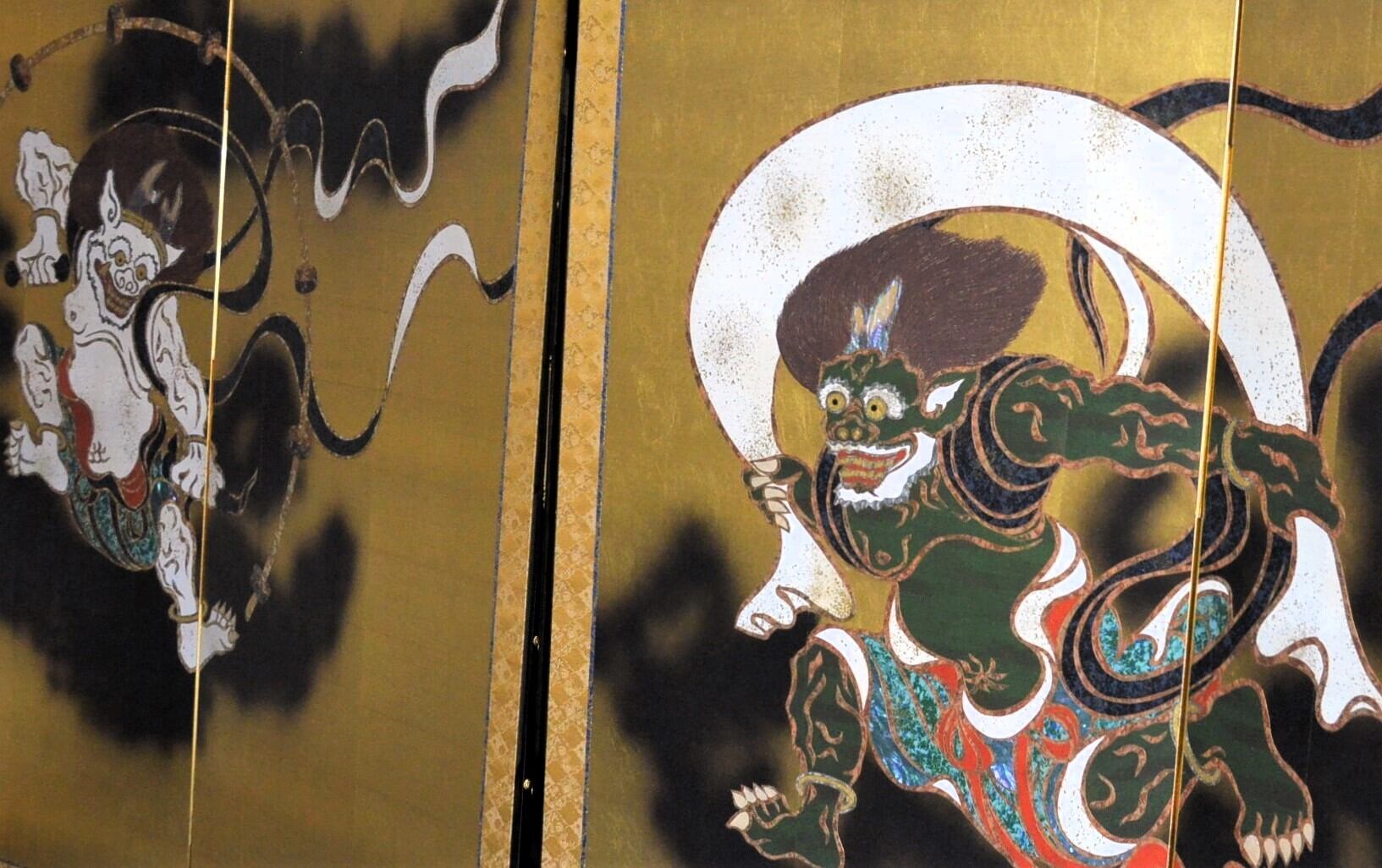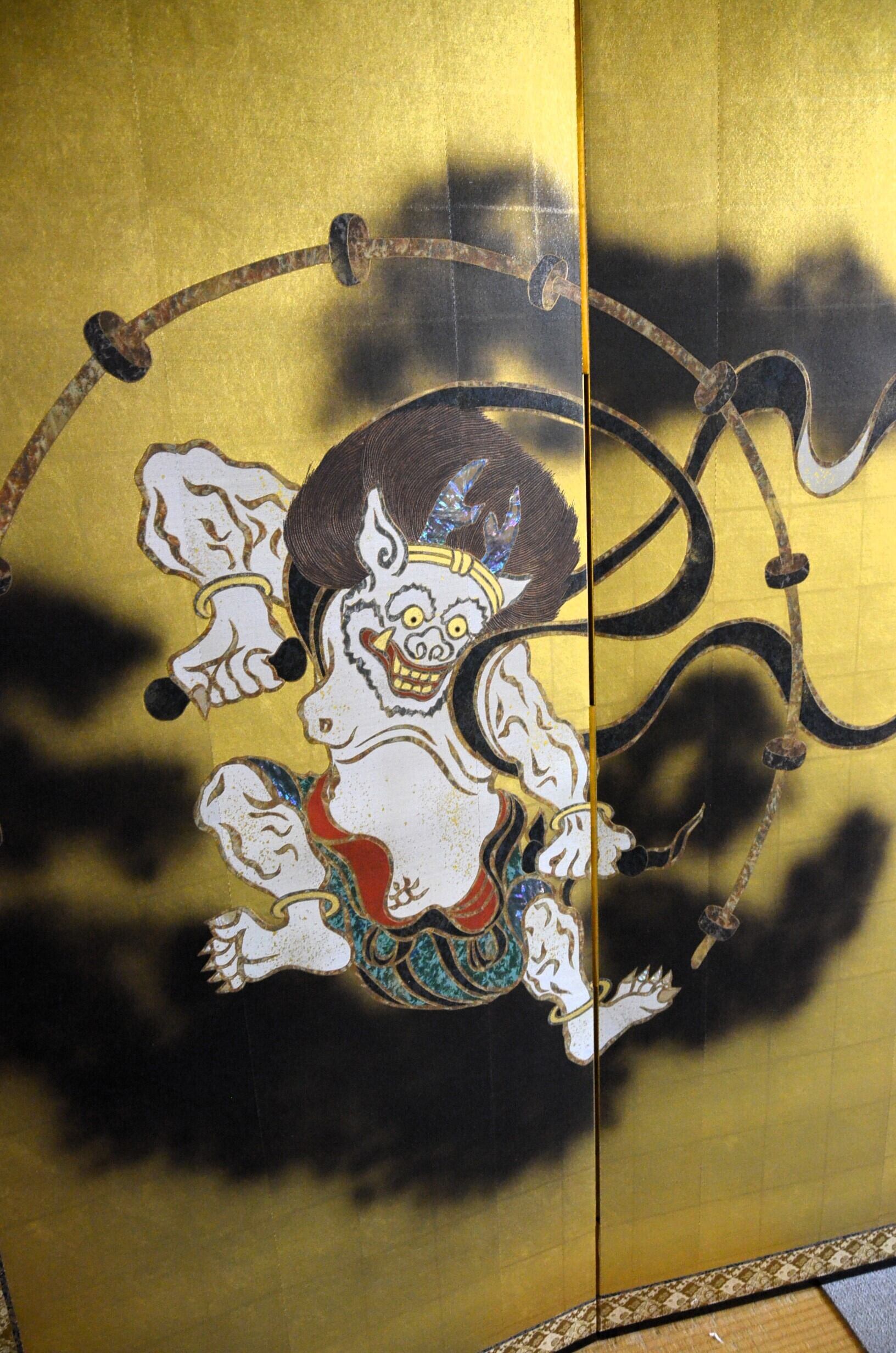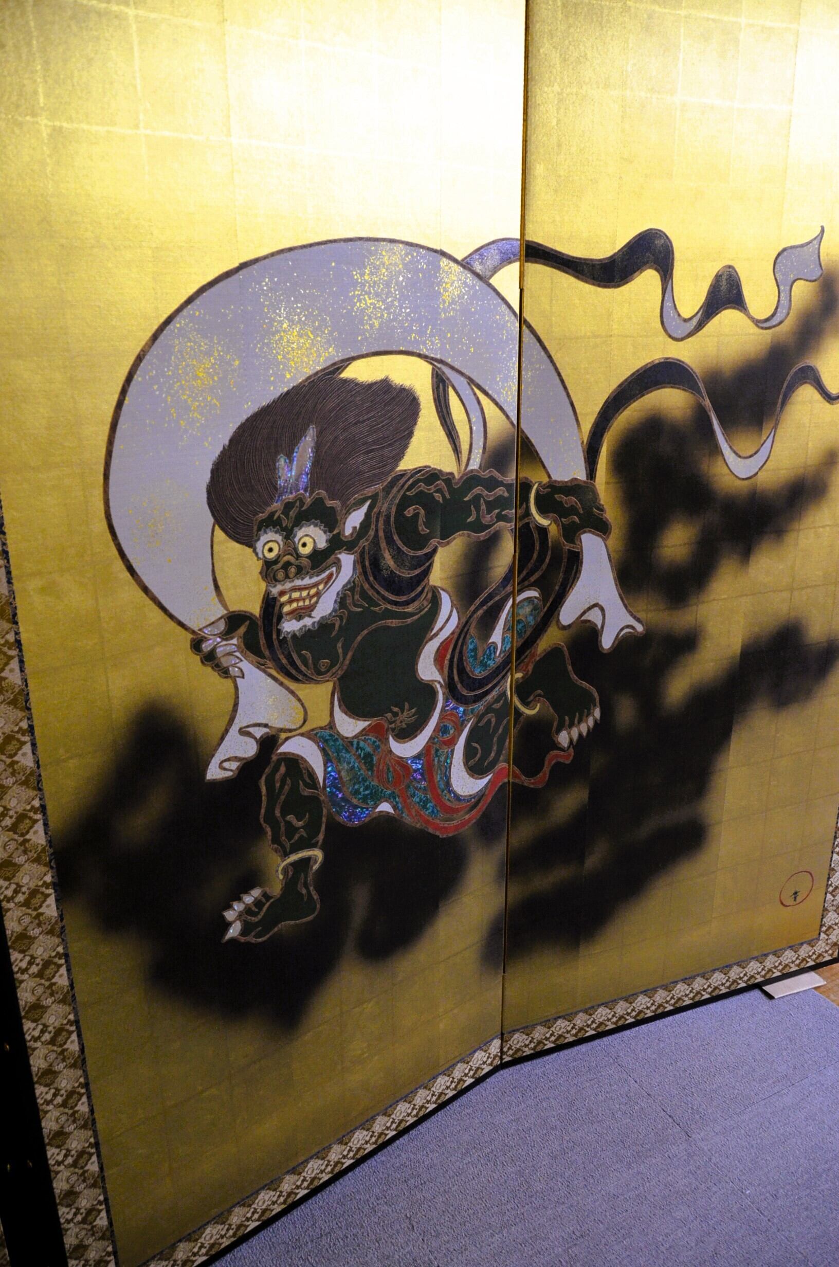 「風神雷神」屏風 純金螺鈿漆箔緯錦織 無月作